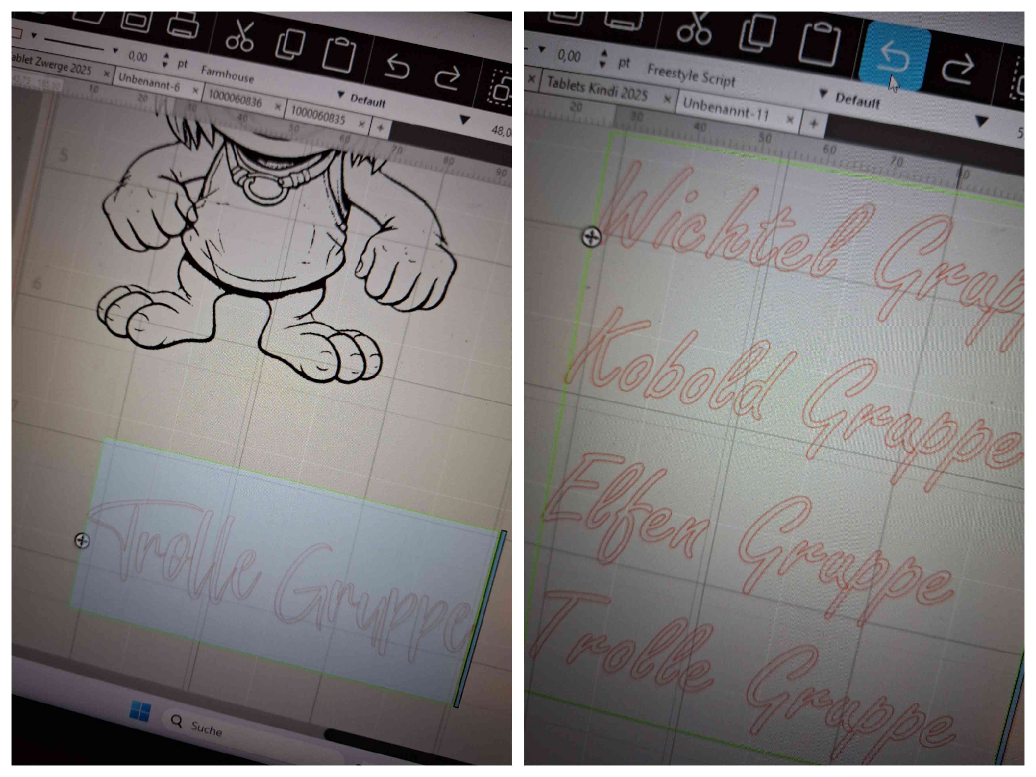 Diesmal wollte ich für alle Gruppennamen die gleiche Schriftart, dabei habe ich ein bisschen durchprobiert, bis alle Namen gut aussahen.