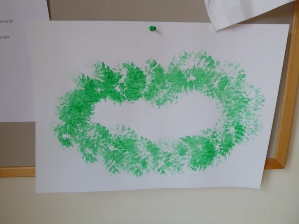 Dieses Jahr, habe ich die Kinder einen Adventskranz malen lassen, mit Hilfe einer Bürste. Mein Plan ist es, die Kerzen auch wieder zu fotografieren, sie auszudrucken und dann mit dem jeweiligen Kind auf ihrem gemalten Kranz zu kleben.