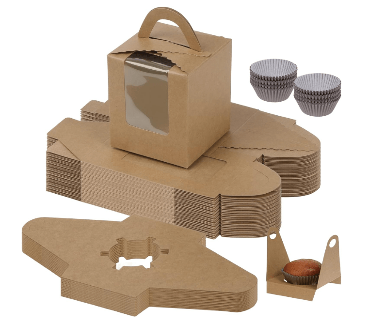 tris Cupcake-Boxen, tragbar, einzelne Cupcake – Boxen mit Fenster, mit Einsatz und Griffen uns Sichtfenster aus PVC, für Hochzeit, Geburtstagsfeier, braun, 25 Stück Marke: TRIS