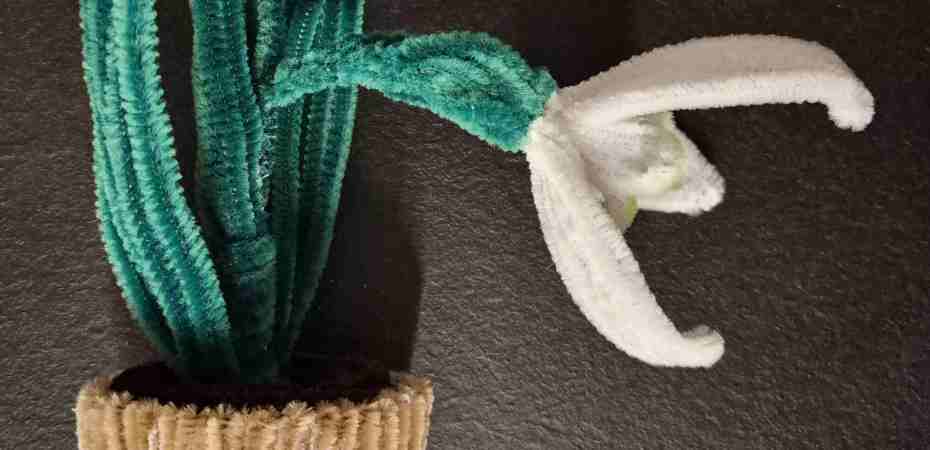 Nach dem ich schon an ein paar Projekten mit Pfeifenputzern gearbeitet habe, dachte ich mir für den Frühling im Kindi, ein paar anschauliche Blumenexemplare zu machen. Begonnen habe ich mit einem Schneeglöckchen:
