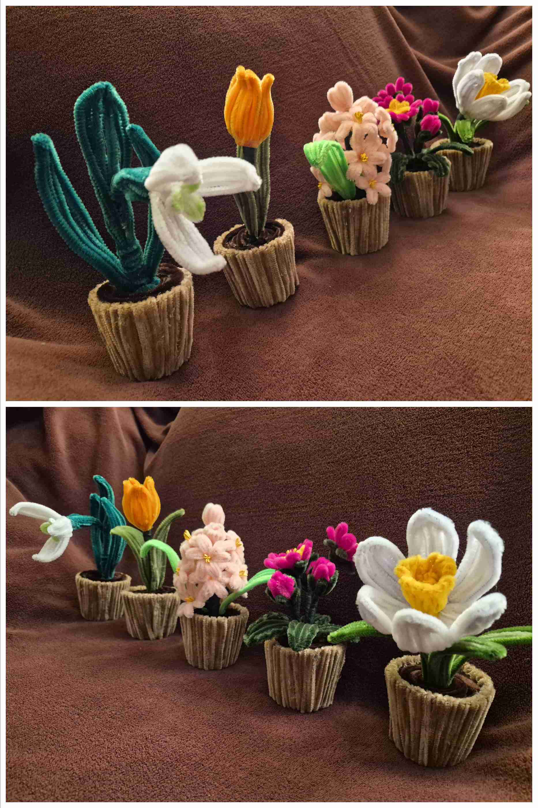 Es ist geschafft – alle meine geplanten Blumen sind fertig. Ich muss sagen, es macht sehr viel Spaß, aus fluffigen Drähten so tolle Sachen zu erstellen. Wer weiß was als nächstes dran ist…