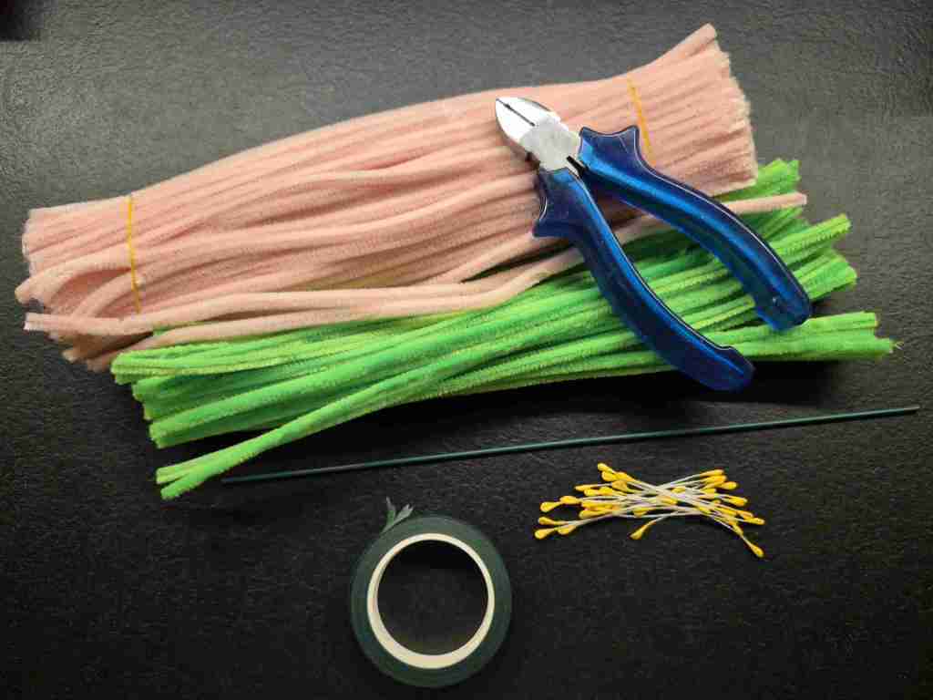 Nun die Blätter. Hier habe ich pro Blatt 3 Pfeifenputzer genommen.
