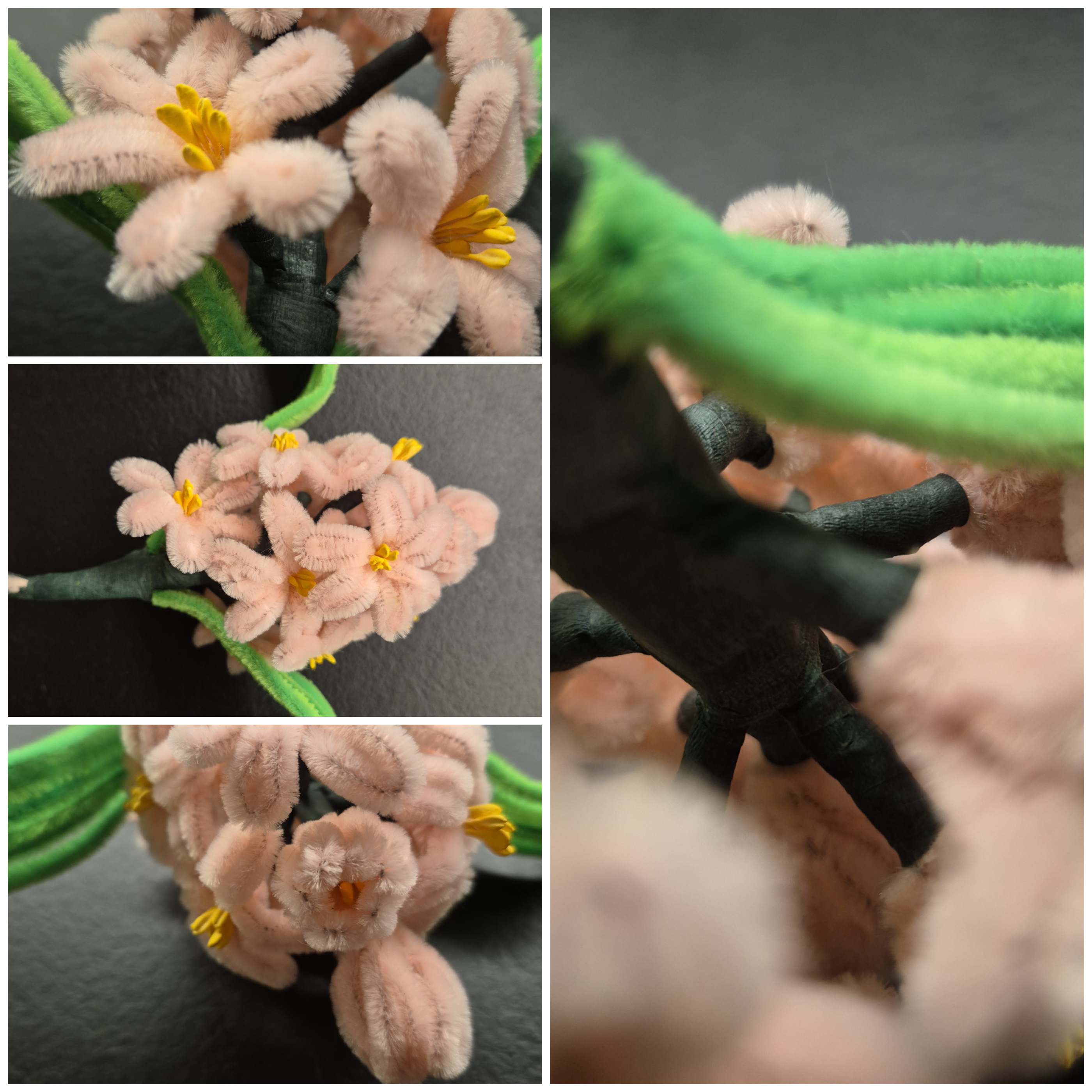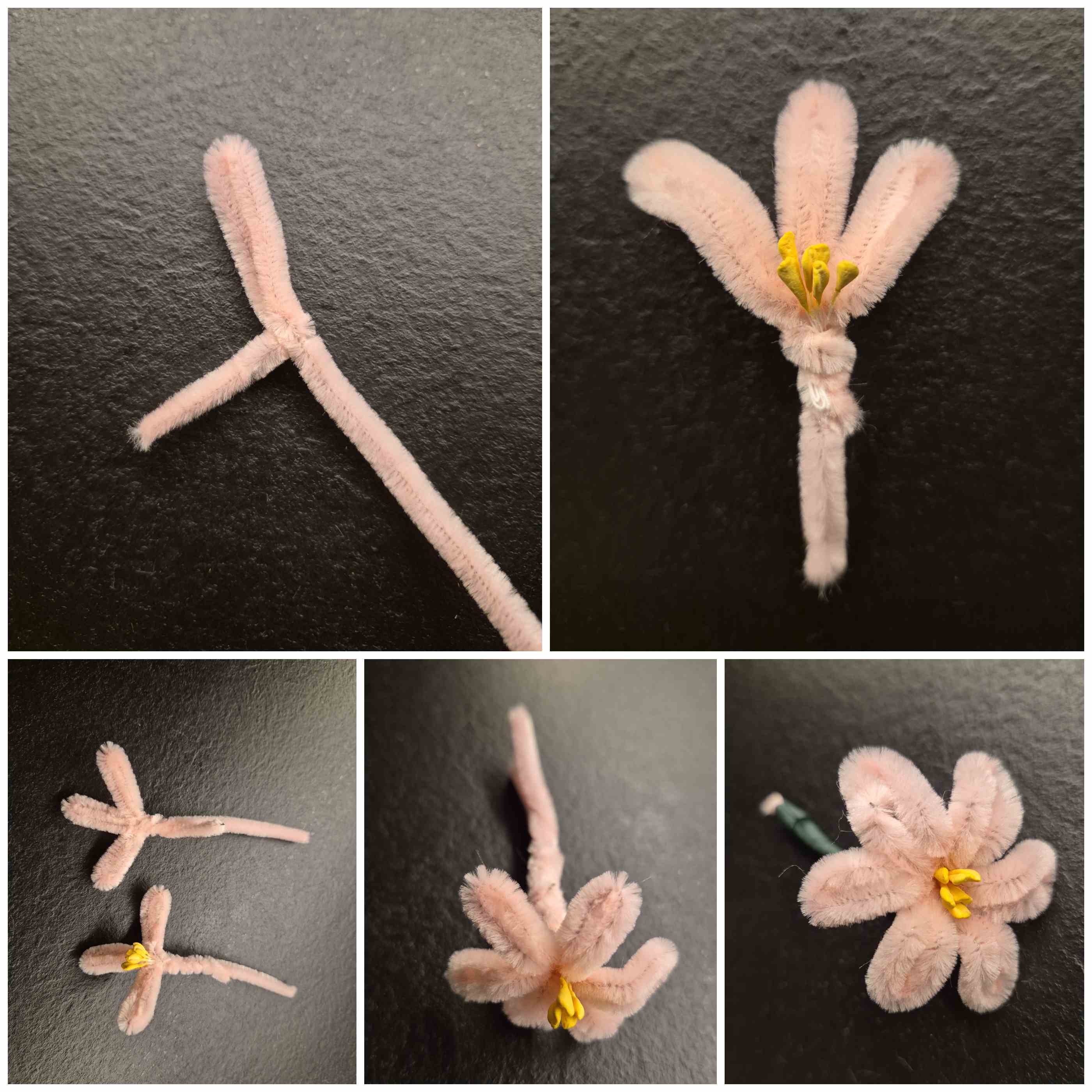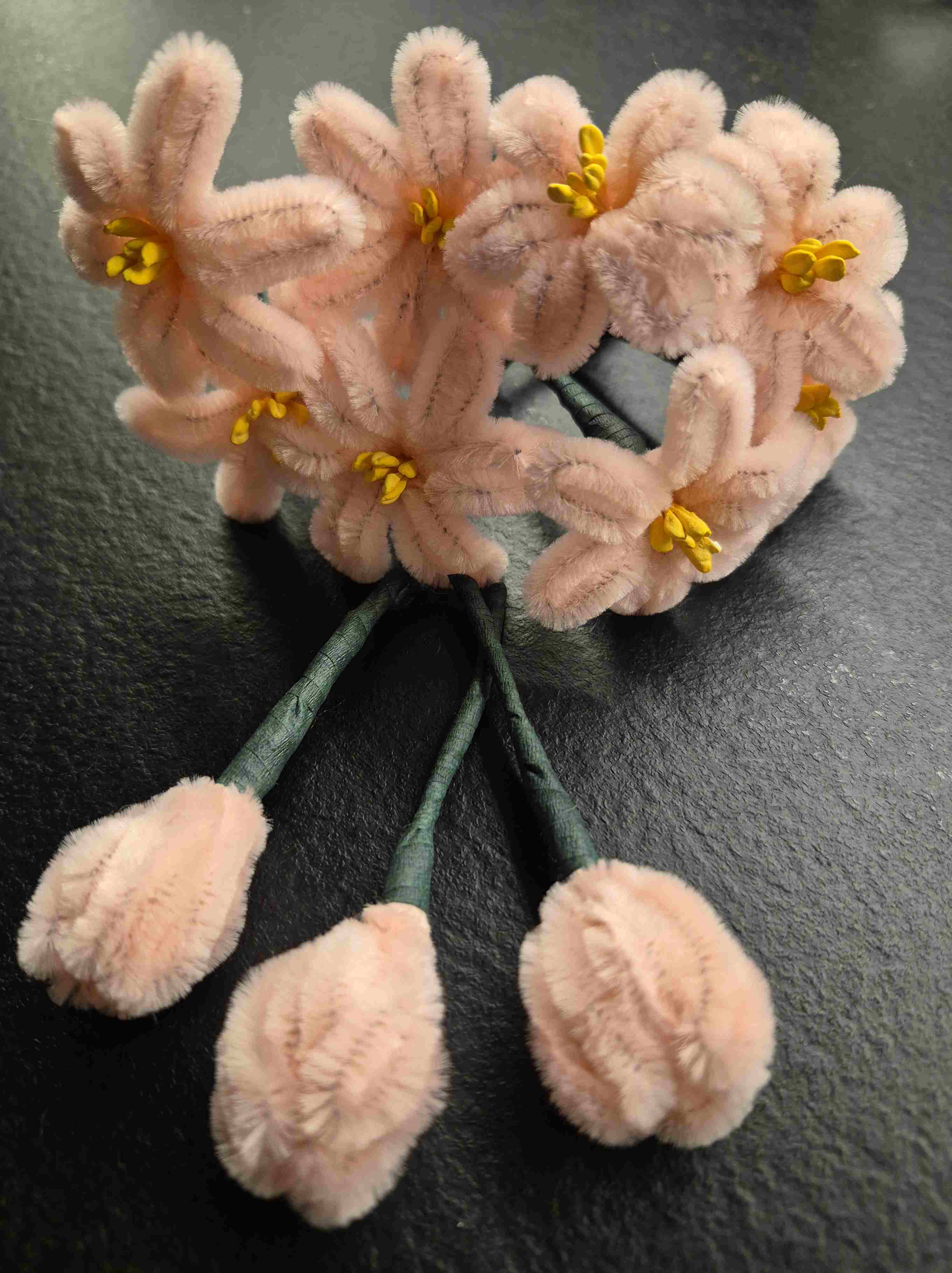 Ich habe insgesamt 11 Blüten und 3 Knospen gemacht. Die Knospen sind in dem Video nicht dabei, aber ich habe sie genau so gemacht wie die Blüten – nur anstelle von einer offenen Blüte, habe ich die Blütenblätter nach innen gebogen.