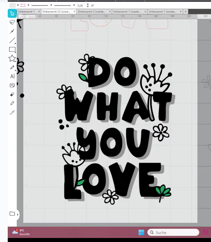 Ein paar Pünktchen und 2 Blütenblätter sind mir abgehauen und sind nicht mehr auffindbar, doch ein bisschen Verlust gibt´s immer. Entweder ich plotte sie irgendwann nochmal oder ich male die Stellen an – und keiner weiß es *g*